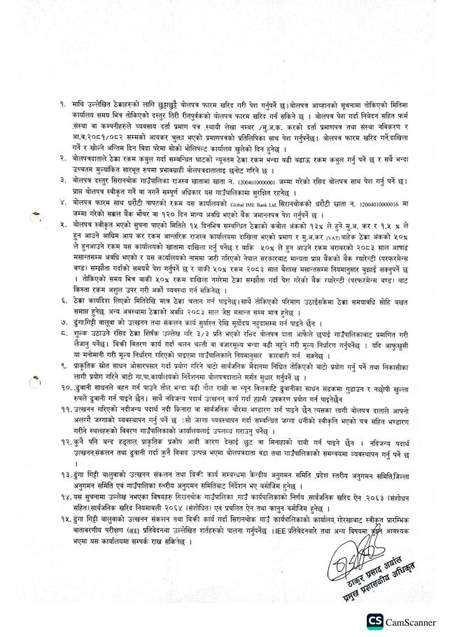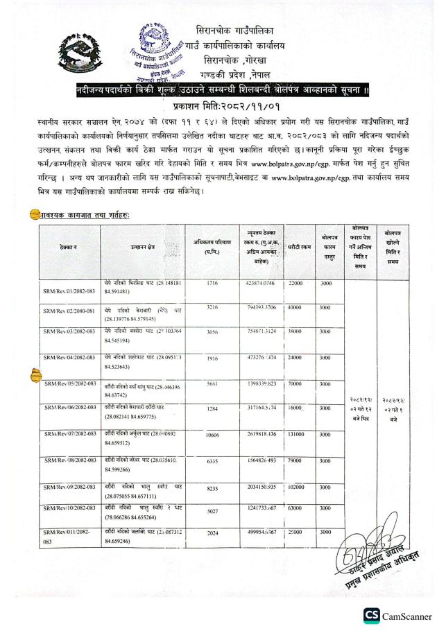 » नदीजन्य पदार्थको बिक्री शूल्क उठाउने सम्बन्धी शिलबन्दी बोलपत्र आब्हानको सूचना ।।