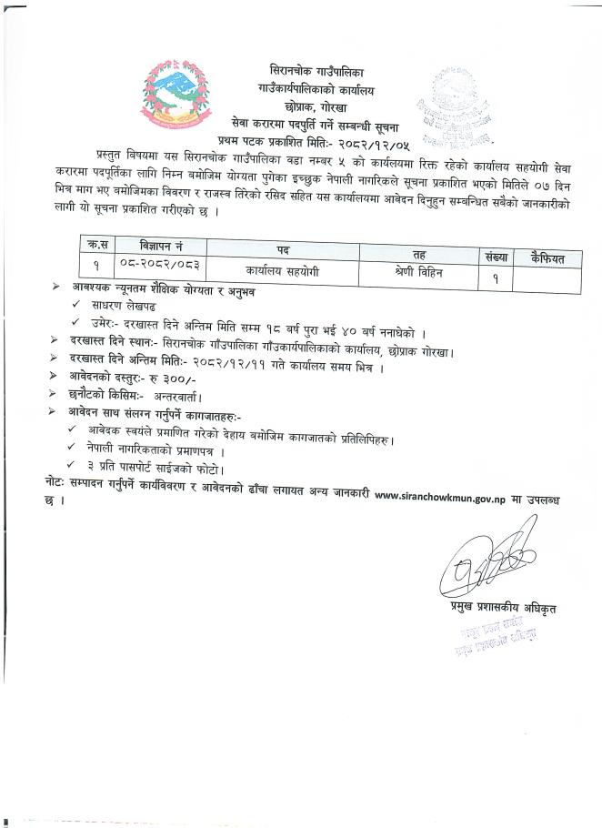 » वडा नं ५ मा कार्यालय सहयोगी सेवा करारमा पदपुर्ति गर्ने सम्बन्धी सूचना ।।