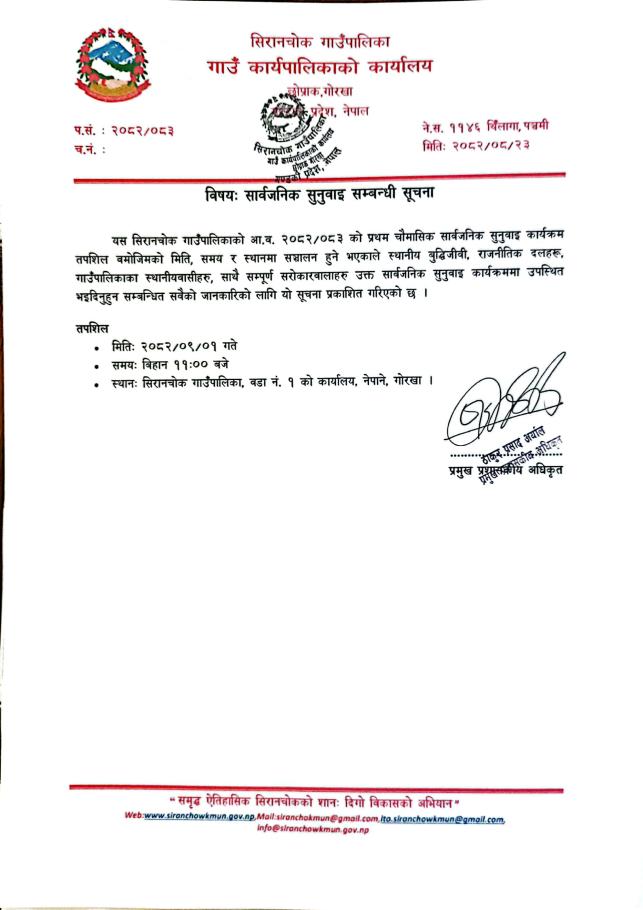 सार्वजानिक सुनुवाइ सम्बन्धी सूचना ।